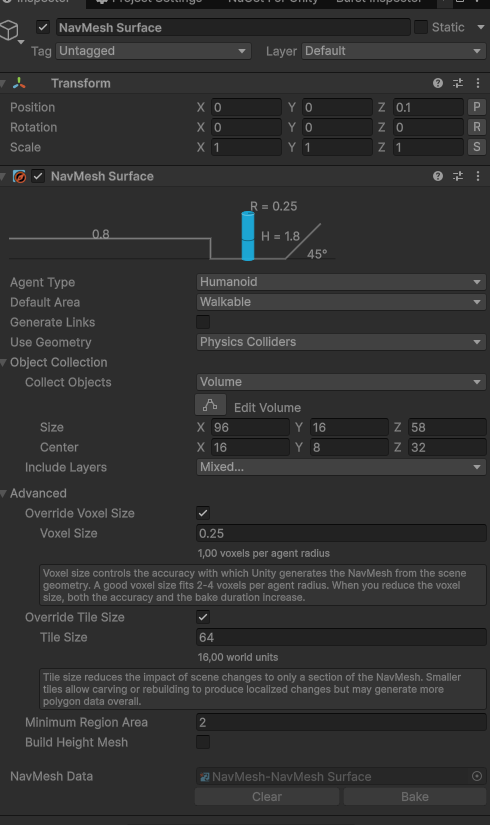 await UniTask.WaitForSeconds(5);var watch = Stopwatch.StartNew(); watch.Start(); path.Scan(); watch.Stop(); Debug.LogWarning("Time for rescan astar is " + watch.ElapsedMilliseconds); var watchNav = Stopwatch.StartNew(); watchNav.Start(); _navMeshSurface.UpdateNavMesh(_navMeshSurface.navMeshData); watchNav.Stop(); Debug.LogWarning("Time for rescan navmesh is " + watchNav.ElapsedMilliseconds);}`