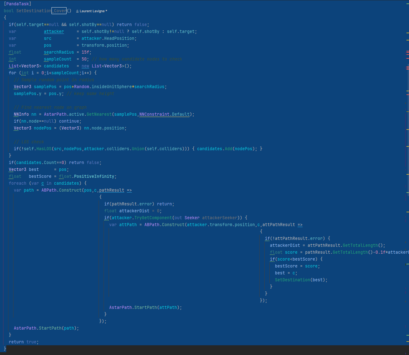 if(attacker!=null && attacker.TryGetComponent<UnityEngine.AI.NavMeshAgent>(out var attackerAgent) && attackerAgent.CalculatePath(p,attackerPath))