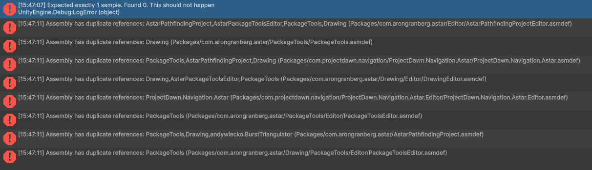 To my knowledge I have not added any .asmdef packages manually to my project. I’m also using the Agents Navigation package from Project Dawn, but that’s been working fine and I’ve never had any issues with it.