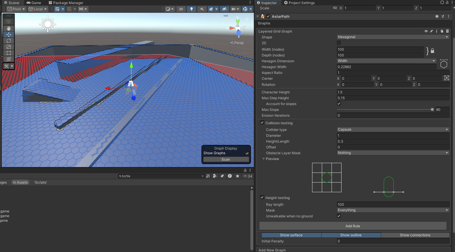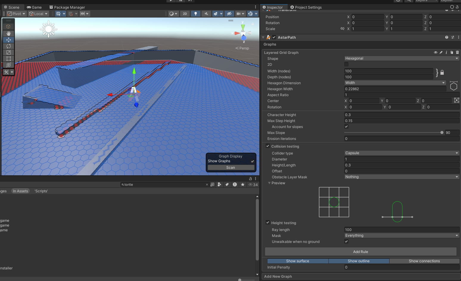 I’ll have to ask about this one. I don’t use the Layered Grid Graph often, since the Recast Graph can handle a lot of its functionality. If you’re doing a game that requires navigating a hexagonal grid with overhangs this is a good choice for you, but I do want to note if both of these are not true (ex: hexagonal grid, but no overhangs or no hexagonal requirement, but needs overhangs) then I’d look at either Recast or just a normal Grid Graph.