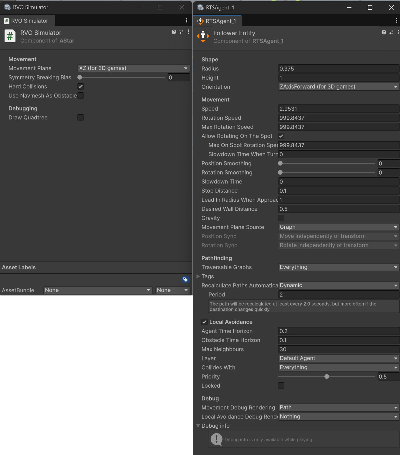 As far as I know, no. I do want to note that one of the best things about this asset is that it’s extremely versatile- You have a lot of options to “craft your own” local avoidance, especially for that “last mile” movement. I did this for my last game– instead of using RVO I just wrote my own “move away from other enemies” script and then had them use that so it would mesh better with my existing movement system.