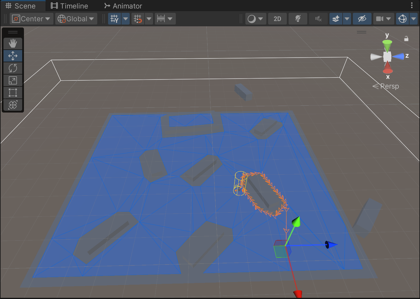 However, when the destination is far away and there are obstacles in between(The feeling after the test), the agent will stop at its current position.
